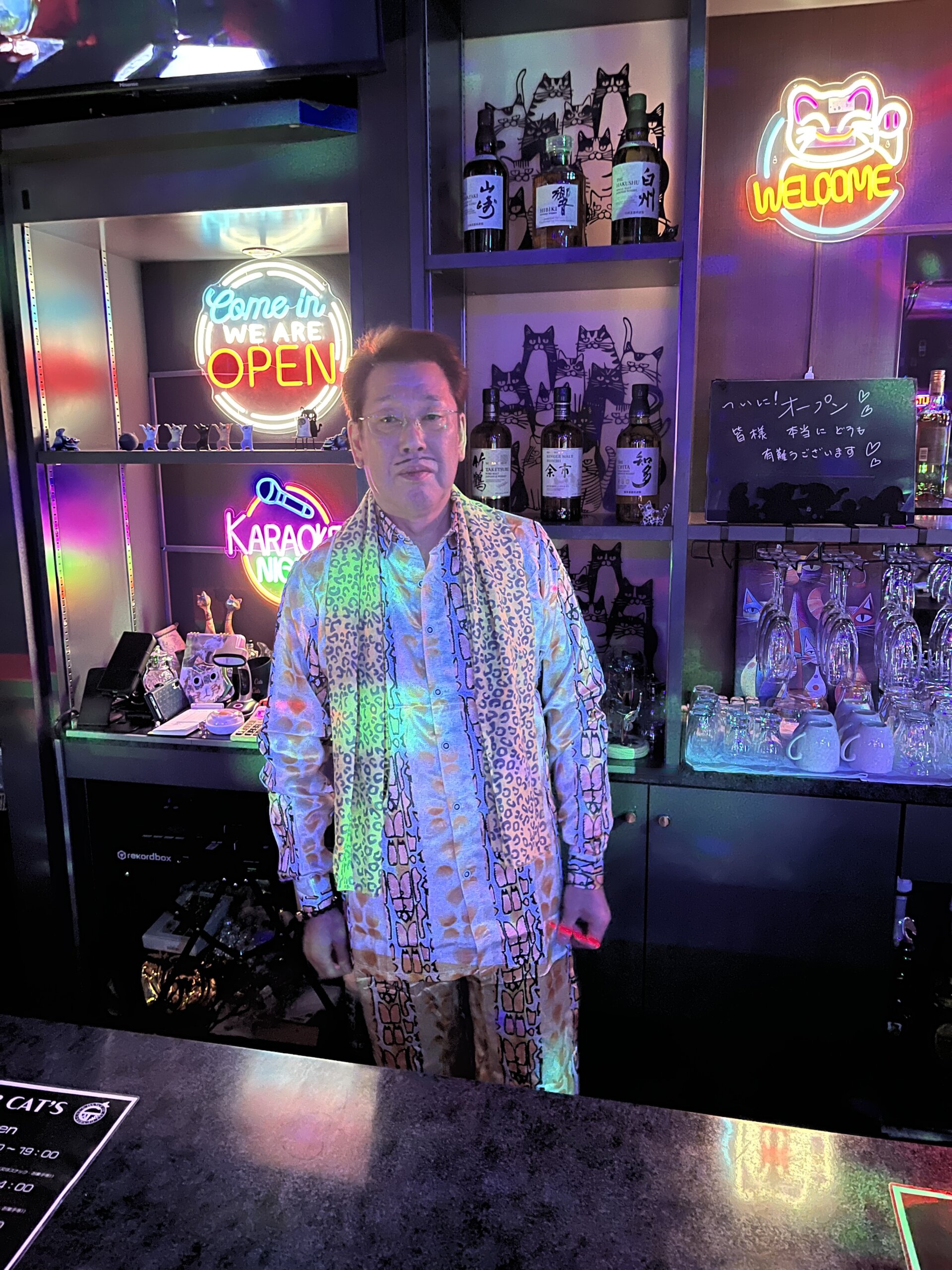 マスターもピコ太郎風の装いで当日皆さまをお迎えしておりました。