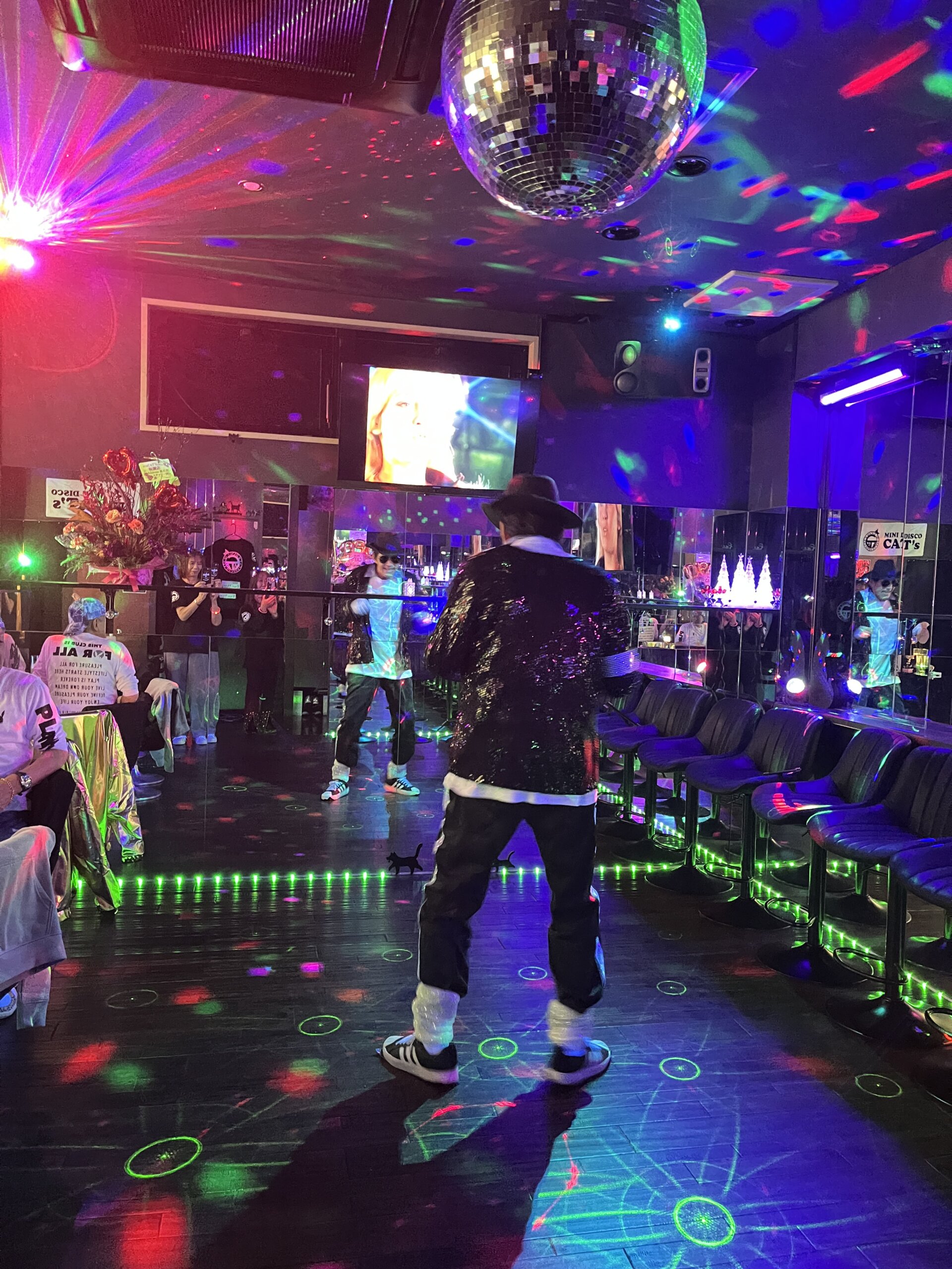 店内のミラーボールがキラキラと輝き、70年代ディスコミュージックが大音量で流れる中、フロアは熱気と最高の笑顔に包まれました!